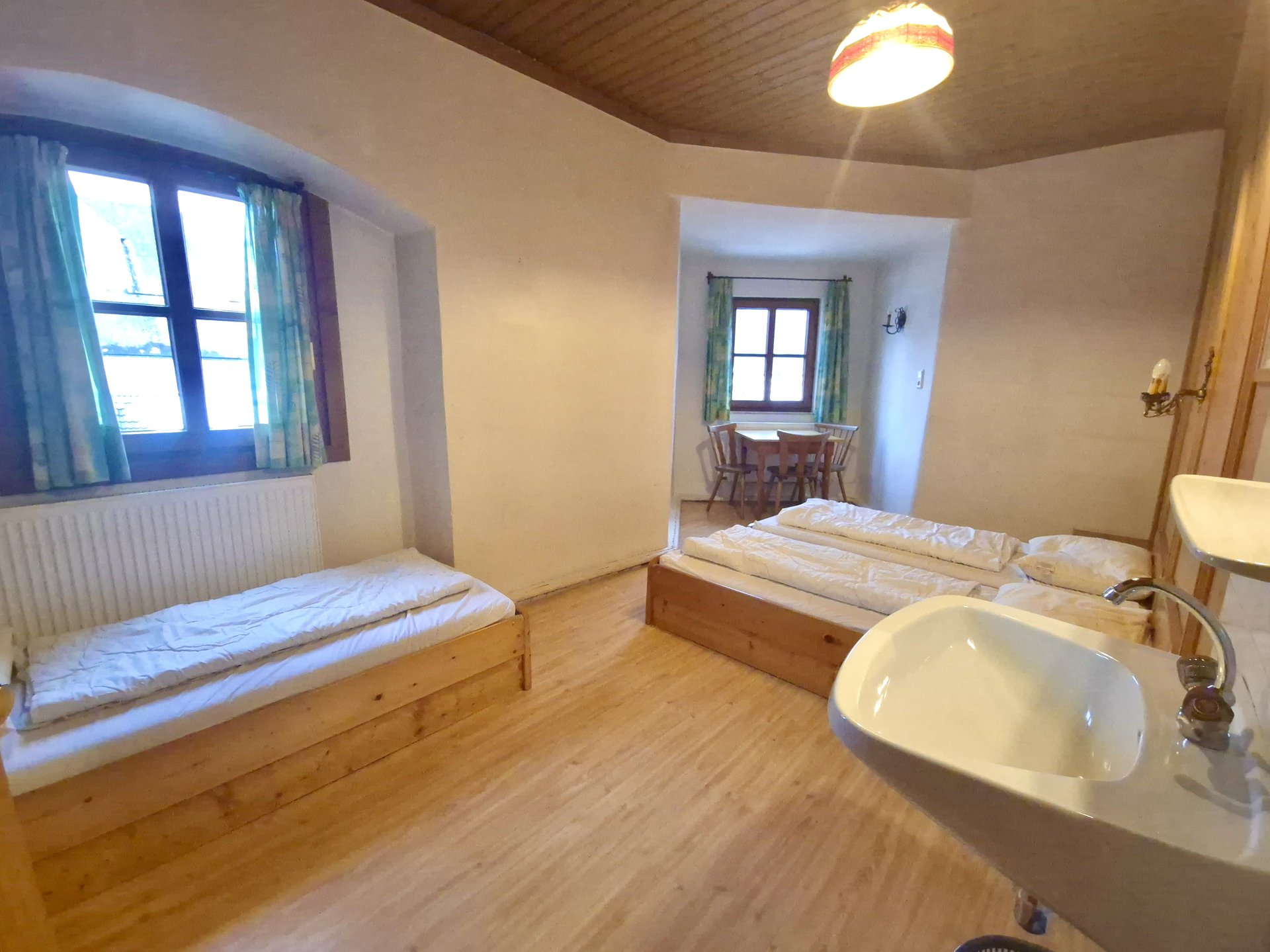 Comfortable multi-bed rooms for 2 to 9 people with private washing facilities ensure restful nights.
